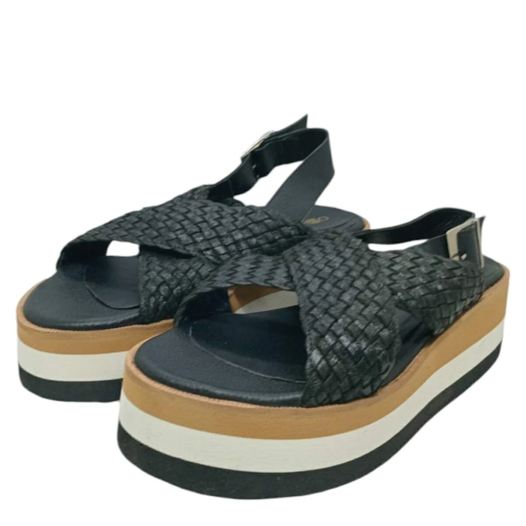 Sandalia tira cruzada fondo tres colores